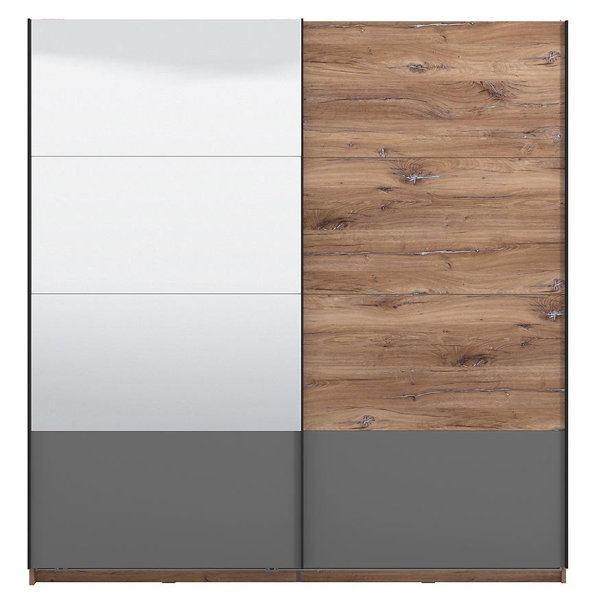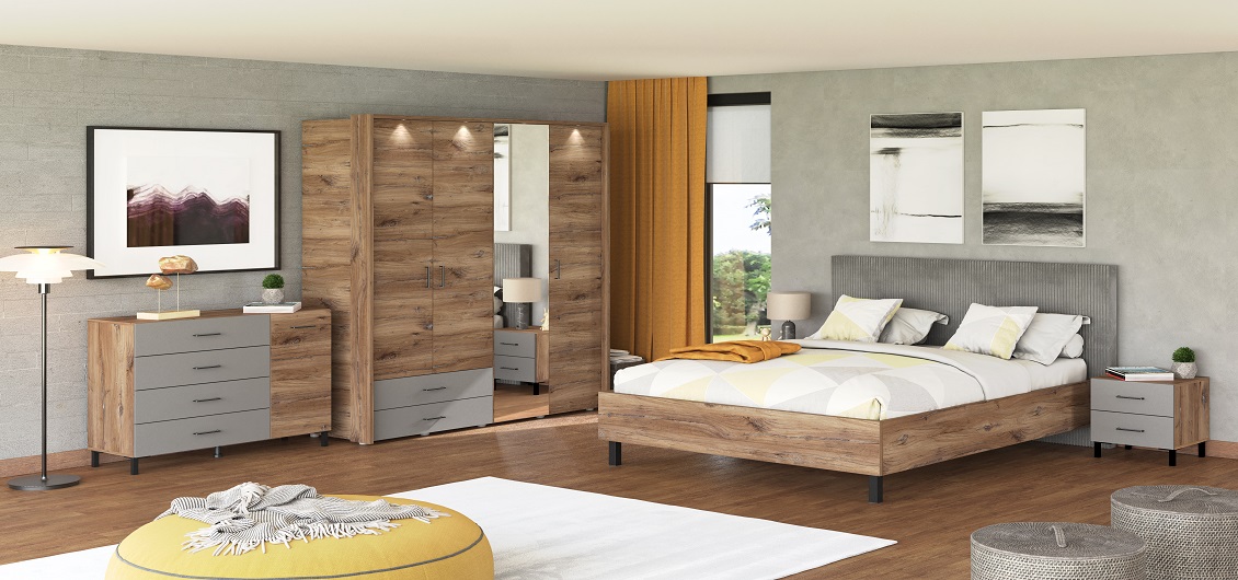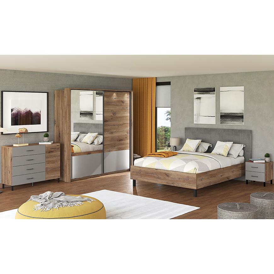 Kolorystyka Szafy to harmonijne połączenie jasnego drewnopodobnego korpusu i frontów w odcieniach dębu masztowego oraz szarości. To połączenie nadaje szafie Nubia eleganckiego wyglądu, który pasuje do wielu różnych aranżacji wnętrzowych. Zarówno korpus, jak i fronty zostały wykończone matowym stylem, co dodaje meblowi trwałości i estetyki.