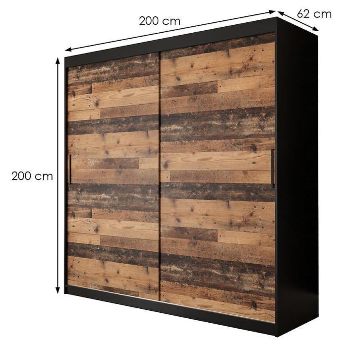 Szafa z drzwiami przesuwnymi Old Wood to doskonały wybór do garderoby, przedpokoju, salonu czy sypialni. Kolor frontów i korpusu sprawiają, że wpasuje się w większość aranżacji. Jej wnętrze jest pojemne i pomieści zarówno ubrania jak i inne akcesoria. Szafa jest 2-drzwiowa.