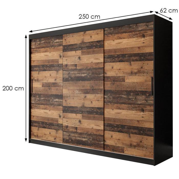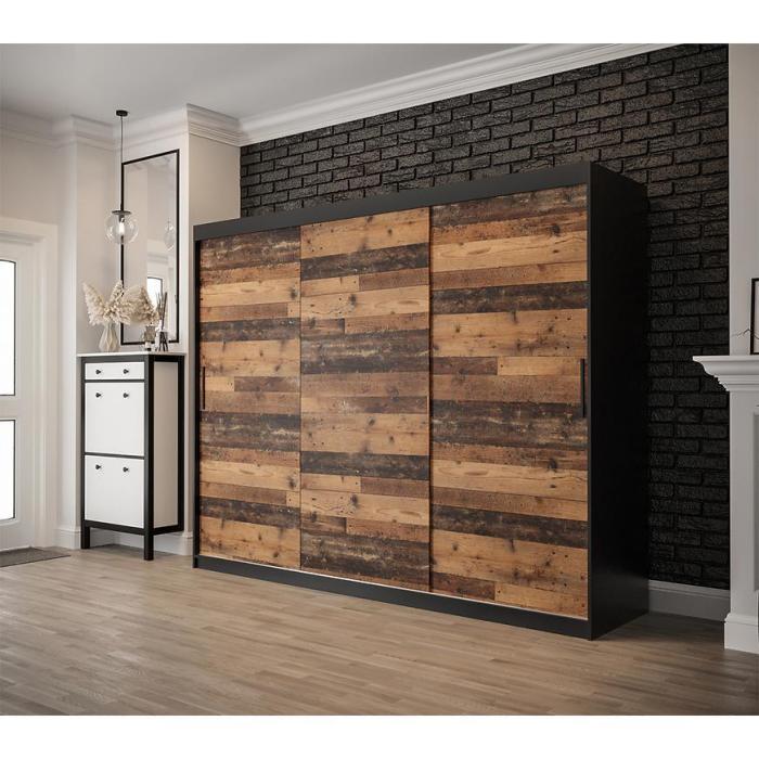Szafa z drzwiami przesuwnymi Old Wood to doskonały wybór do garderoby, przedpokoju, salonu czy sypialni. Kolor frontów i korpusu sprawiają, że wpasuje się w większość aranżacji. Jej wnętrze jest pojemne i pomieści zarówno ubrania jak i inne akcesoria. Szafa jest 3-drzwiowa.