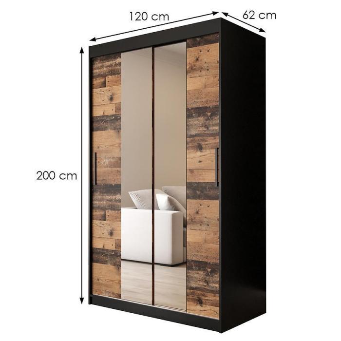 Szafa Old Wood T1 120 Czarny/Old Style/Lustro