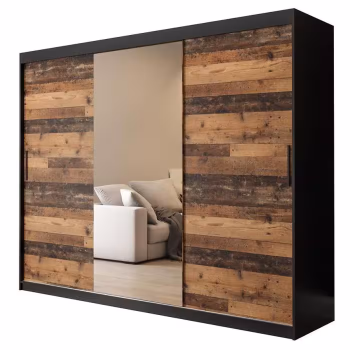 Szafa z drzwiami przesuwnymi Old Wood to doskonały wybór do garderoby, przedpokoju, salonu czy sypialni. Kolor frontów i korpusu sprawiają, że wpasuje się w większość aranżacji. Jej wnętrze jest pojemne i pomieści zarówno ubrania jak i inne akcesoria. Szafa jest 3-drzwiowa.