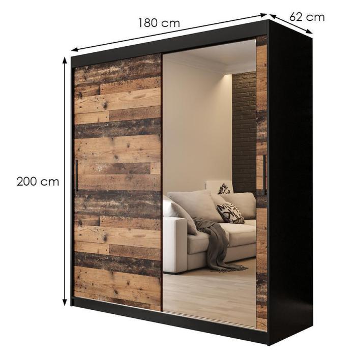 Szafa Old Wood T2 180 Czarny/Old Style/Lustro
