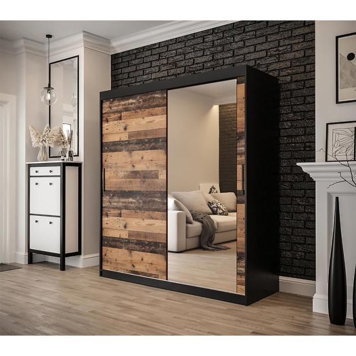 Obrazek Szafa Old Wood T2 150 Czarny/Old Style/Lustro