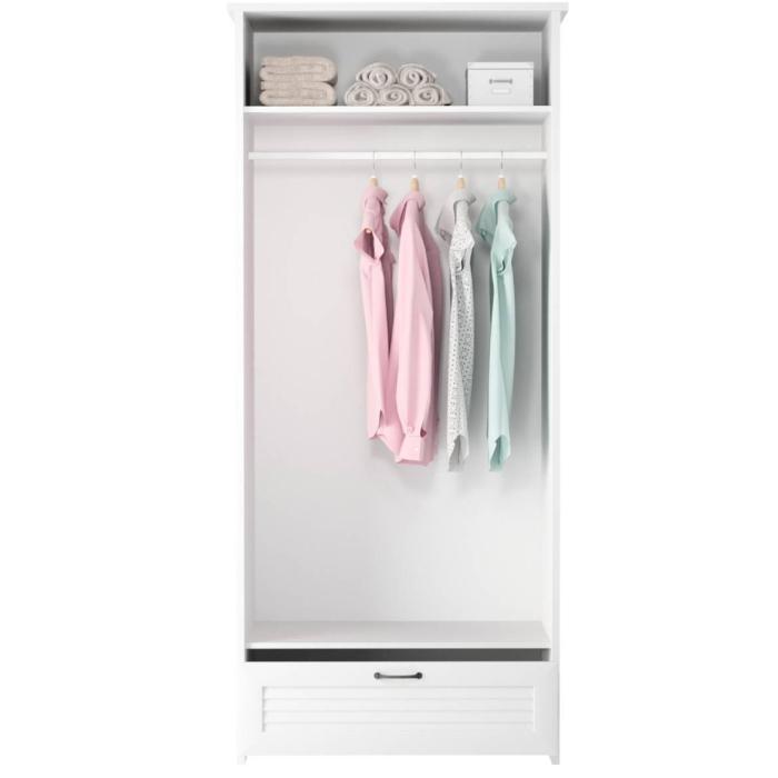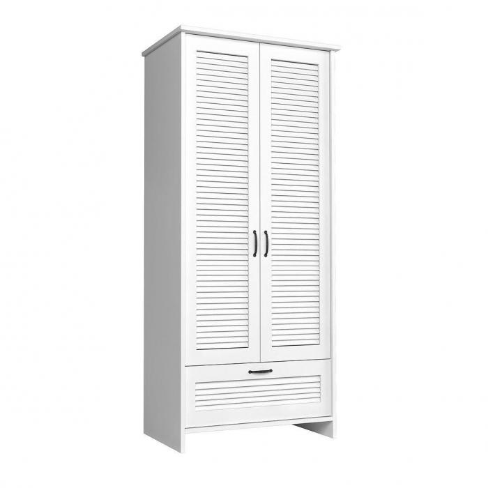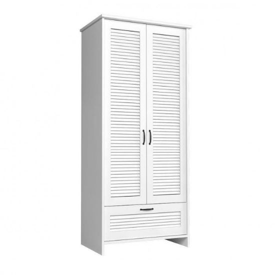 Szafa z kolekcji Orient jest to mebel ponadczasowy dzięki któremu stworzysz niepowtarzalne wnętrze. Korpus szafy jest wykonany z płyty meblowej laminowanej natomiast fronty są wykonane z płyty laminowanej w połączeniu z płytą MDF. Całość wykończona w białym matowym kolorze. Szerokość szafy Orient wynosi 201cm, co pozwala na wygodne przechowywanie wielu ubrań w jednym miejscu. Mebel 2-drzwiowy podzielony na dwie komory jest pojemny, a co za tym idzie funkcjonalny. Dzięki kolekcji Orient stworzysz przytulne oraz niepowtarzalne pomieszczenie a biała kolorystyka będzie idealną bazą pod różnorodne dodatki. Szafa przeznaczona do samodzielnego montażu.