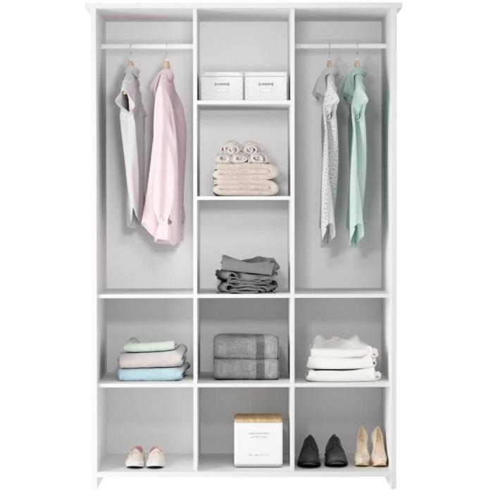 Szafa z kolekcji Orient jest to mebel ponadczasowy dzięki któremu stworzysz niepowtarzalne wnętrze. Korpus szafy jest wykonany z płyty meblowej laminowanej natomiast fronty są wykonane z płyty laminowanej w połączeniu z płytą MDF. Całość wykończona w białym matowym kolorze. Szerokość szafy Orient wynosi 128,5 cm, co pozwala na wygodne przechowywanie wielu ubrań w jednym miejscu. Mebel 3-drzwiowy podzielony na trzy komory jest pojemny, a co za tym idzie funkcjonalny. Dwie górne komory z wbudowanymi wieszakami poradzi sobie z ubraniami wiszącymi, natomiast oddzielona dolna posłużyć może do przechowywania mniejszych przedmiotów. Środkowa część to pojemne półki Szafę Orient wykonano z płyty meblowej i jest ona przeznaczona do samodzielnego montażu z instrukcją. Dzięki kolekcji Orient stworzysz przytulne oraz niepowtarzalne pomieszczenie a biała kolorystyka będzie idealną bazą pod różnorodne dodatki.
