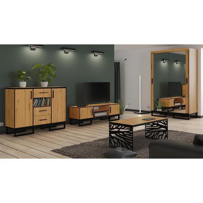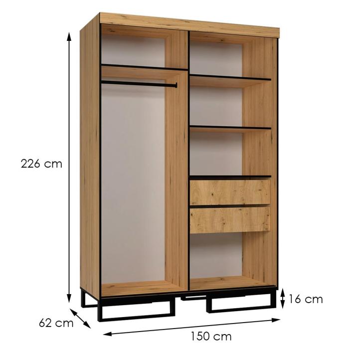 Szafa Oslo w kolorze wotan to propozycja do pokoju dziennego, ale znajdzie swoje miejsce również w innym pomieszczeniu, jak na przykład - przedpokój czy garderobie. Materiał wykonania to płyta wiórowa laminowana. Szafa posiada również lustro, które sprawi, że pomieszczenie stanie się optycznie większe. Nowoczesny styl mebli wpadnie do gustu każdemu, kto poszukuje eleganckiego, klasycznego, a zarazem nowoczesnego umeblowania. Idealnie wpasuje się w większość aranżacji. Przeznaczona do samodzielnego montażu.