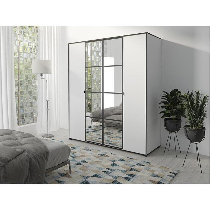 Szafa uchylna w kolorze biały/czarny propozycja do pokoju dziennego, ale znajdzie swoje miejsce również w innym pomieszczeniu, jak na przykład - przedpokój czy garderobie. Materiał wykonania to płyta wiórowa laminowana. Szafa posiada lustro, które sprawi, że pomieszczenie stanie się optycznie większe. Nowoczesny styl mebli wpadnie do gustu każdemu, kto poszukuje eleganckiego, klasycznego, a zarazem nowoczesnego umeblowania. Idealnie wpasuje się w większość aranżacji. Przeznaczona do samodzielnego montażu.