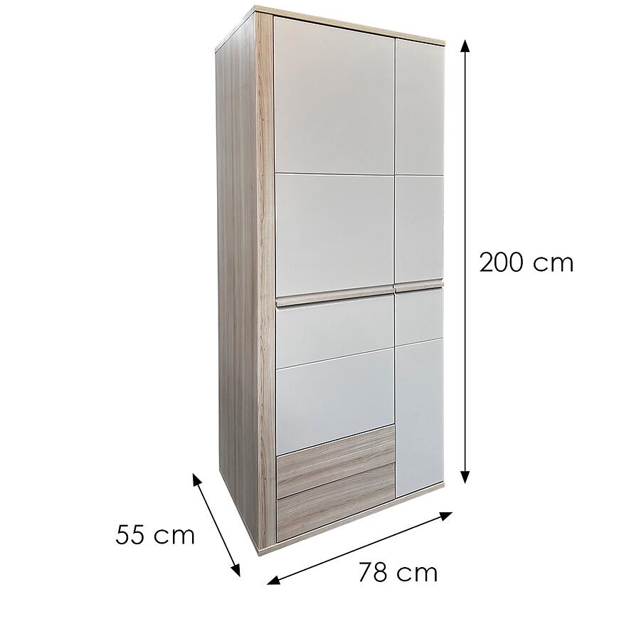Szafa Oslo Os/1 Riva/Caschmere to stylowy mebel, który łączy nowoczesny design z praktycznym zastosowaniem. Dzięki wymiarom wysokość 200 cm, szerokość 78 cm, głębokość 55 cm, oferuje przestronne wnętrze do przechowywania ubrań, dodatków i innych przedmiotów, jednocześnie zajmując niewiele miejsca w pomieszczeniu. Szafa doskonale sprawdzi się w sypialni, przedpokoju czy garderobie, gdzie liczy się zarówno styl, jak i funkcjonalność.