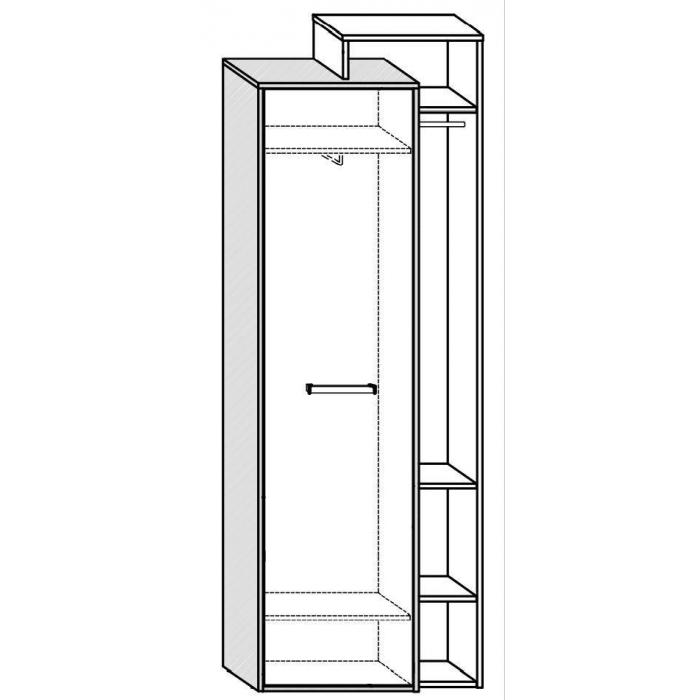 Szafa z uchylnymi drzwiami i regałem
