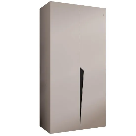 Szafa Piano 1-100 w wybarwieniu kaszmir/czarny to nowoczesna dwudrzwiowa szafa, która łączy minimalistyczny design z funkcjonalnością. Prosta bryła, matowe wykończenie frontów i korpusu oraz delikatny kaszmirowy odcień nadają meblowi elegancki i stylowy charakter, a czarne akcenty subtelnie podkreślają nowoczesny design.