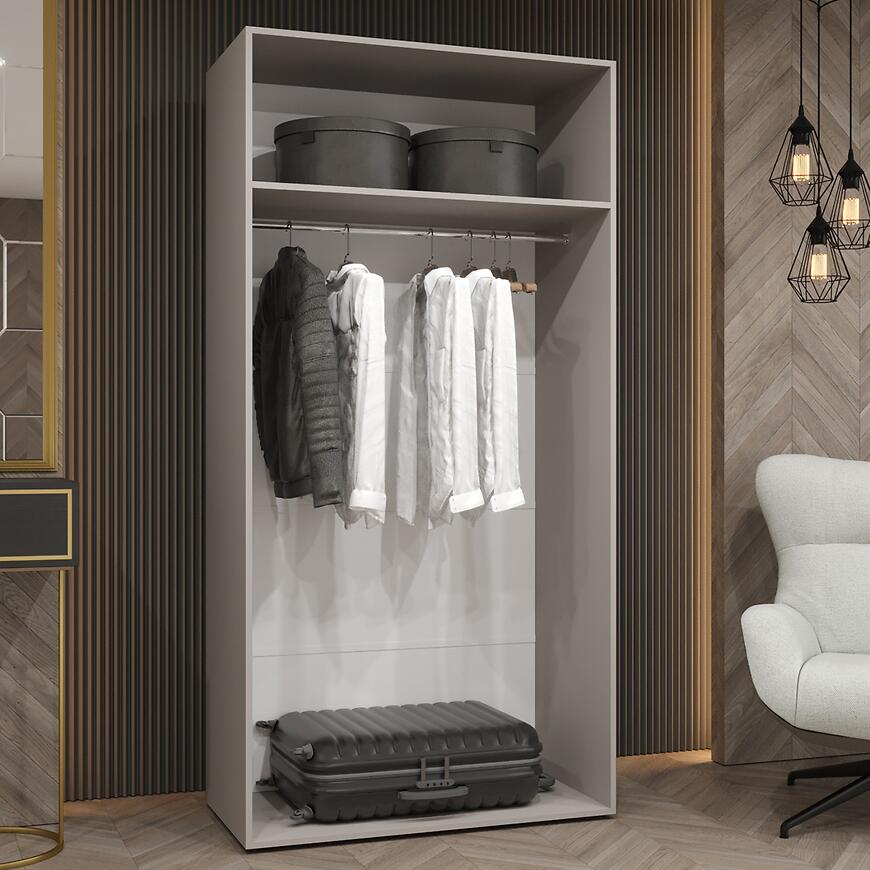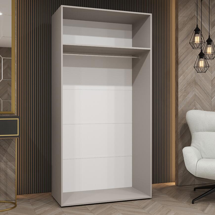 Model Piano 1-100 oferuje przemyślaną przestrzeń do przechowywania przy kompaktowych wymiarach. Dwudrzwiowa konstrukcja pozwala na wygodne organizowanie garderoby, a brak lustra i matowe fronty tworzą elegancką, spójną powierzchnię.