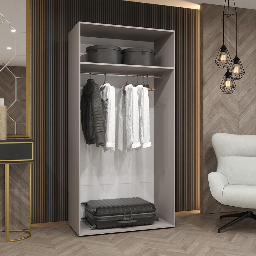 Model Piano 1-100 oferuje przemyślaną przestrzeń do przechowywania przy kompaktowych wymiarach. Dwudrzwiowa konstrukcja pozwala na wygodne porządkowanie garderoby, a brak lustra i matowe fronty tworzą spójną i elegancką powierzchnię.