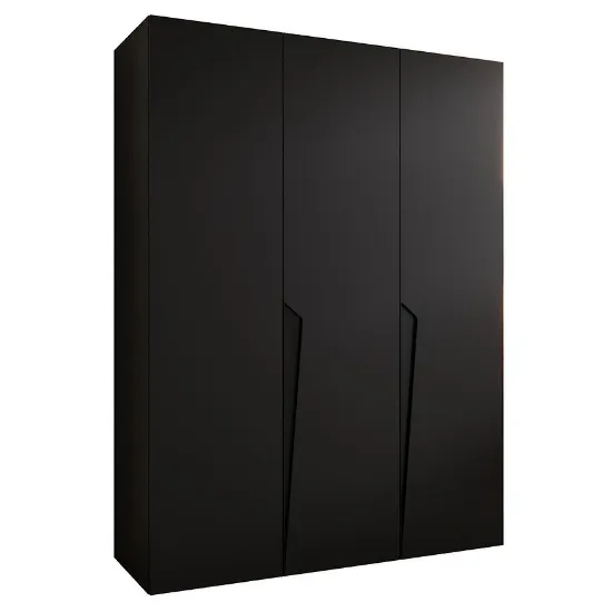 Szafa Piano 1-150 czarny/czarny – nowoczesna trzydrzwiowa szafa bez lustra o szerokości 150 cm. Pojemna, solidna i elegancka, wykonana z płyty laminowanej, w głębokiej czerni.