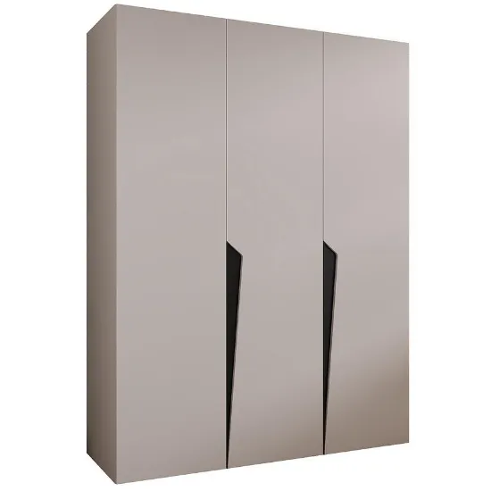 Szafa Piano 1-150 w wybarwieniu kaszmir/czarny to nowoczesna trzydrzwiowa szafa, która łączy minimalistyczny design z dużą funkcjonalnością. Prosta bryła, matowe wykończenie frontów i korpusu oraz kontrastujące czarne akcenty nadają meblowi elegancki i wyrafinowany charakter.
