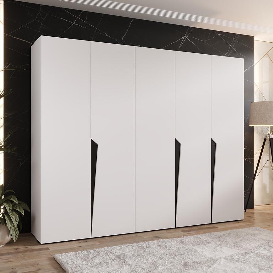 Szafa Piano 1-250 biały/czarny – nowoczesna kilkudrzwiowa szafa 250 cm