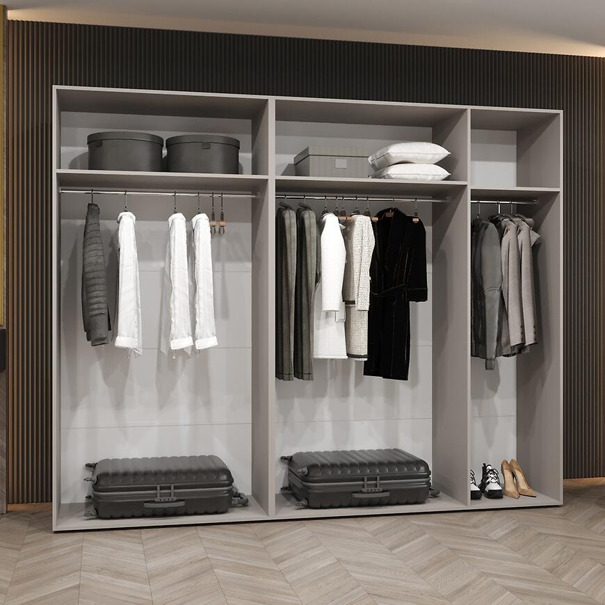 Model Piano 1-250 oferuje ogromną przestrzeń do przechowywania, pozwalającą na wygodne segregowanie garderoby i utrzymanie porządku w codziennym użytkowaniu. Kilkudrzwiowa konstrukcja w połączeniu z matowymi frontami tworzy elegancką, spójną i harmonijną powierzchnię.