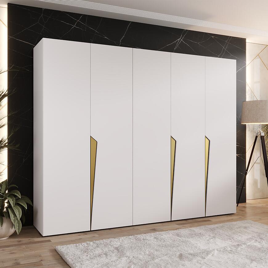 Szafa Piano 1-250 biały/złoty – nowoczesna kilkudrzwiowa szafa 250 cm