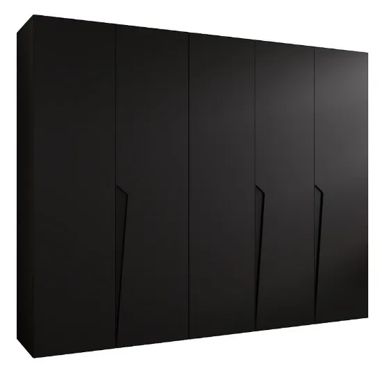 Szafa Piano 1-250 w wybarwieniu czarny/czarny to nowoczesna kilkudrzwiowa szafa, która łączy minimalistyczny design z przestronną funkcjonalnością. Matowe fronty i korpus w głębokiej czerni nadają meblowi elegancki, nowoczesny i luksusowy charakter, tworząc harmonijną i stylową przestrzeń w każdym wnętrzu.