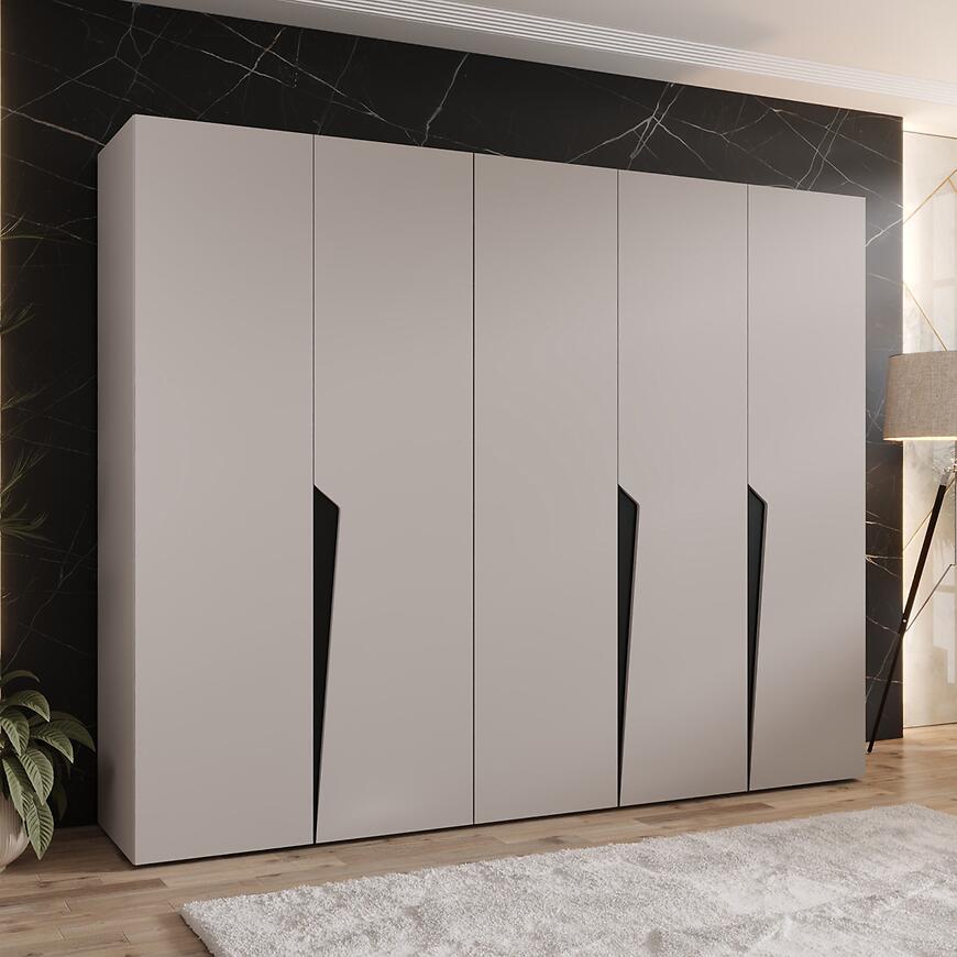 Szafa Piano 1-250 kaszmir/czarny – nowoczesna kilkudrzwiowa szafa 250 cm