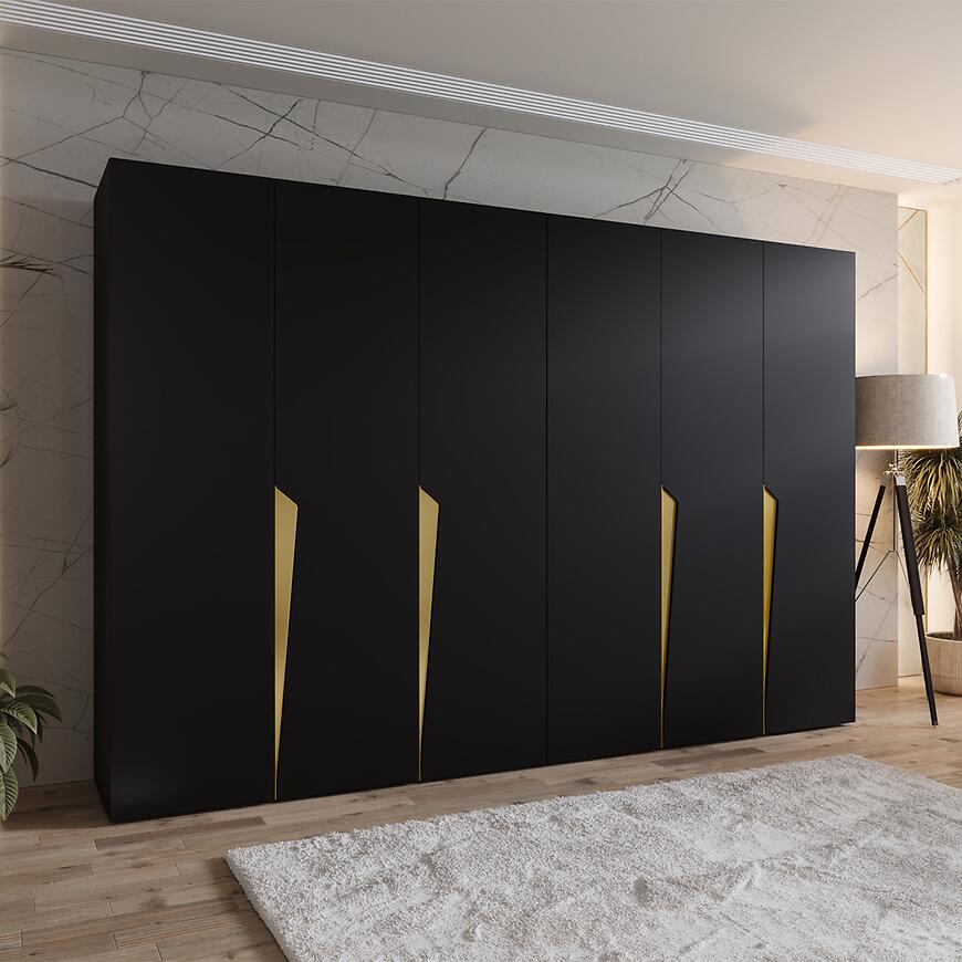 Szafa Piano 1-300 (2x150) czarny/złoty – nowoczesna szafa 300 cm