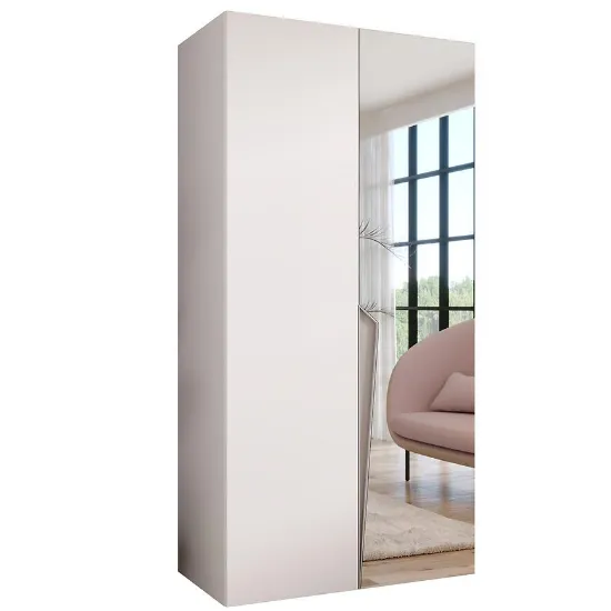 Szafa Piano 2-100 biały/kaszmir łączy elegancki wygląd z praktycznym wnętrzem. Lustro eliminuje potrzebę dodatkowego elementu w przestrzeni, a starannie dobrane kolory nadają meblowi spójny i nowoczesny charakter. To doskonały wybór dla osób ceniących nowoczesny design, funkcjonalność i estetykę.