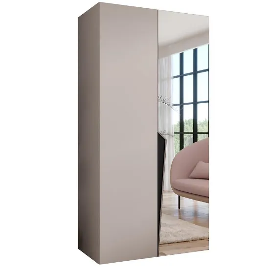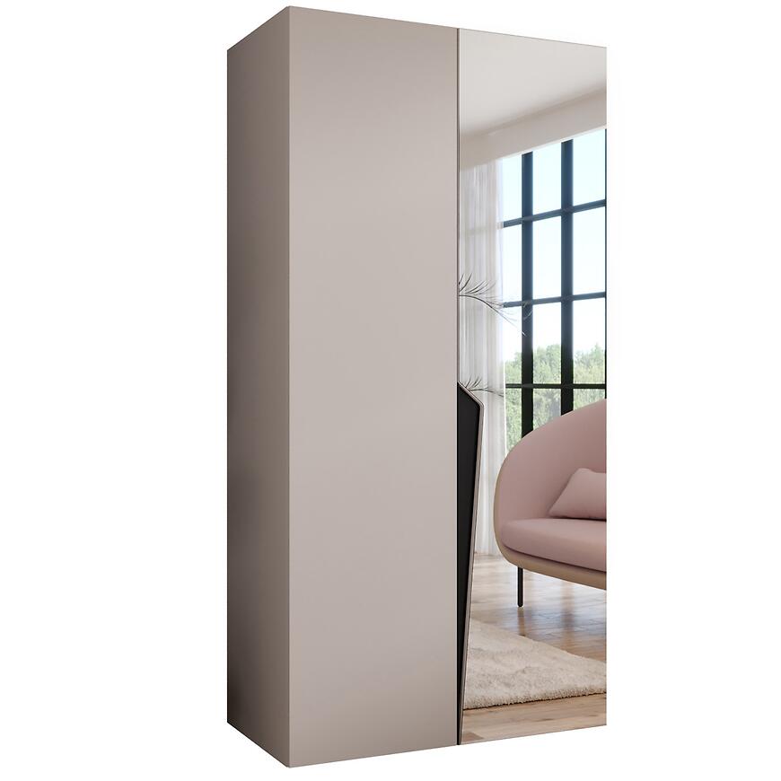 Szafa Piano 2-100 kaszmir/czarny – nowoczesna szafa dwudrzwiowa z lustrem, 100 cm szerokości. Fronty w połysku w kolorze kaszmir z czarnym akcentem, elegancka i funkcjonalna do sypialni lub przedpokoju.