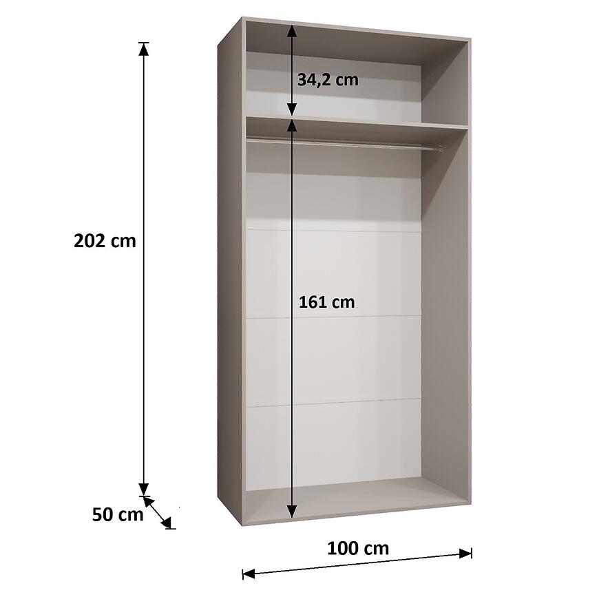 Szerokość 100 cm, wysokość 202 cm i głębokość 52 cm sprawiają, że szafa świetnie sprawdzi się w mniejszych pomieszczeniach, takich jak sypialnia, przedpokój czy pokój młodzieżowy. Dwudrzwiowa konstrukcja z klasycznymi drzwiami zapewnia wygodny dostęp do całej zawartości, a lustro ułatwia codzienne korzystanie.