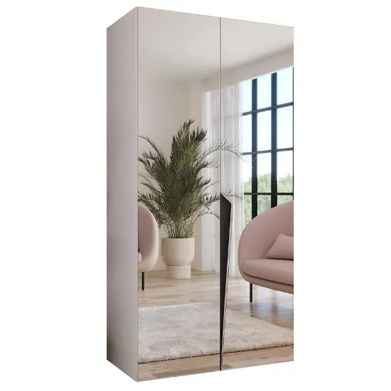 Model wyposażony jest w klasyczne drzwi oraz funkcjonalne lustro, które optycznie powiększa przestrzeń i ułatwia codzienne przygotowanie stylizacji. Prosty kształt szafy pozwala dopasować ją do nowoczesnych i minimalistycznych wnętrz.