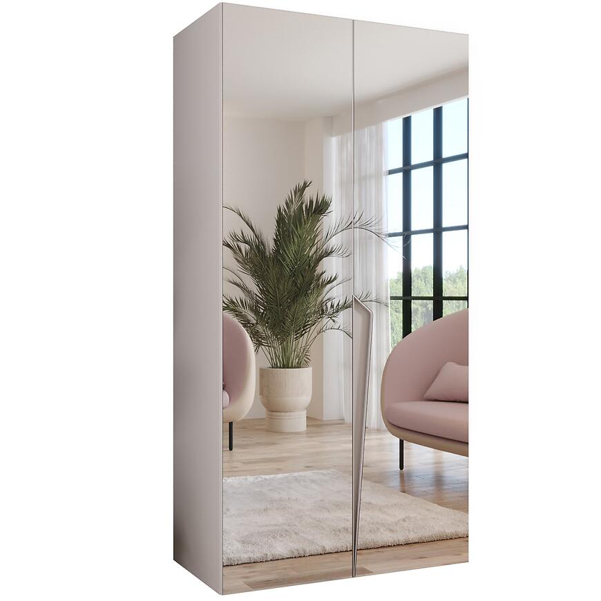 Model posiada klasyczne drzwi oraz funkcjonalne lustro, które optycznie powiększa przestrzeń i ułatwia codzienne przygotowanie stylizacji. Prosta forma szafy pozwala dopasować ją do nowoczesnych i minimalistycznych wnętrz.