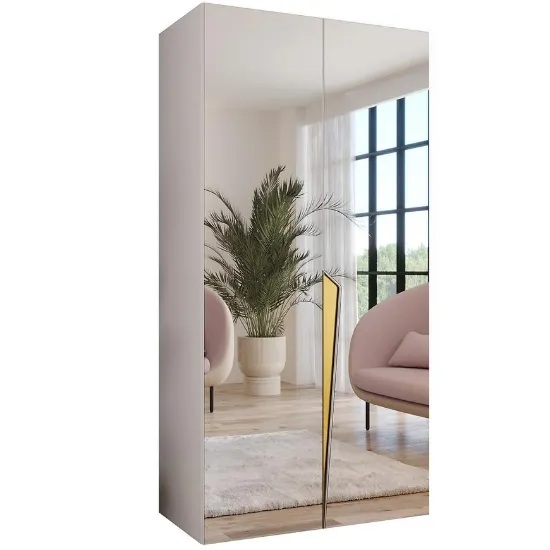 Model wyposażony jest w klasyczne drzwi oraz funkcjonalne lustro, które optycznie powiększa przestrzeń i ułatwia codzienne przygotowanie stylizacji. Prosta forma szafy pozwala dopasować ją do nowoczesnych, minimalistycznych i eleganckich wnętrz.