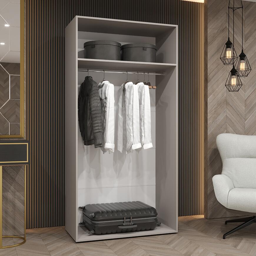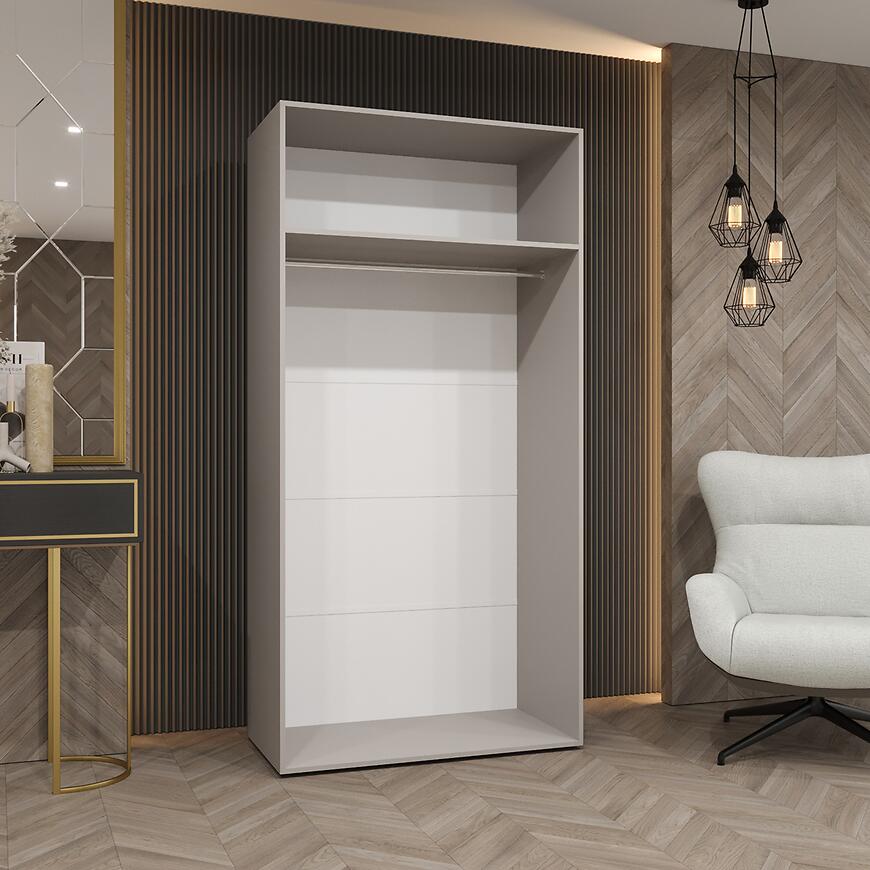 Wymiary 100 × 202 × 52 cm zapewniają wygodne miejsce do przechowywania ubrań i dodatków, jednocześnie pozwalając na ustawienie mebla nawet w mniejszych pomieszczeniach. Szafa przeznaczona jest do samodzielnego montażu.
