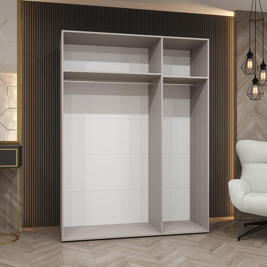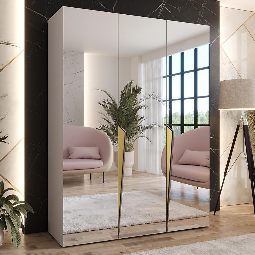 Szafa Piano 3-150 kaszmir/złoty to elegancki i funkcjonalny mebel, który doskonale sprawdzi się w sypialni, garderobie. Połączenie kaszmirowych frontów w połysku ze złotymi detalami nadaje wnętrzu nowoczesny i luksusowy charakter. Trzydrzwiowa konstrukcja zapewnia wygodną przestrzeń do przechowywania ubrań, dodatków i tekstyliów.
