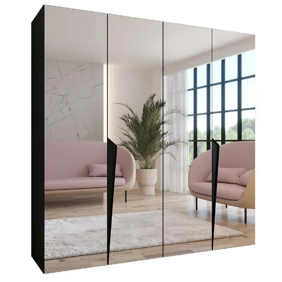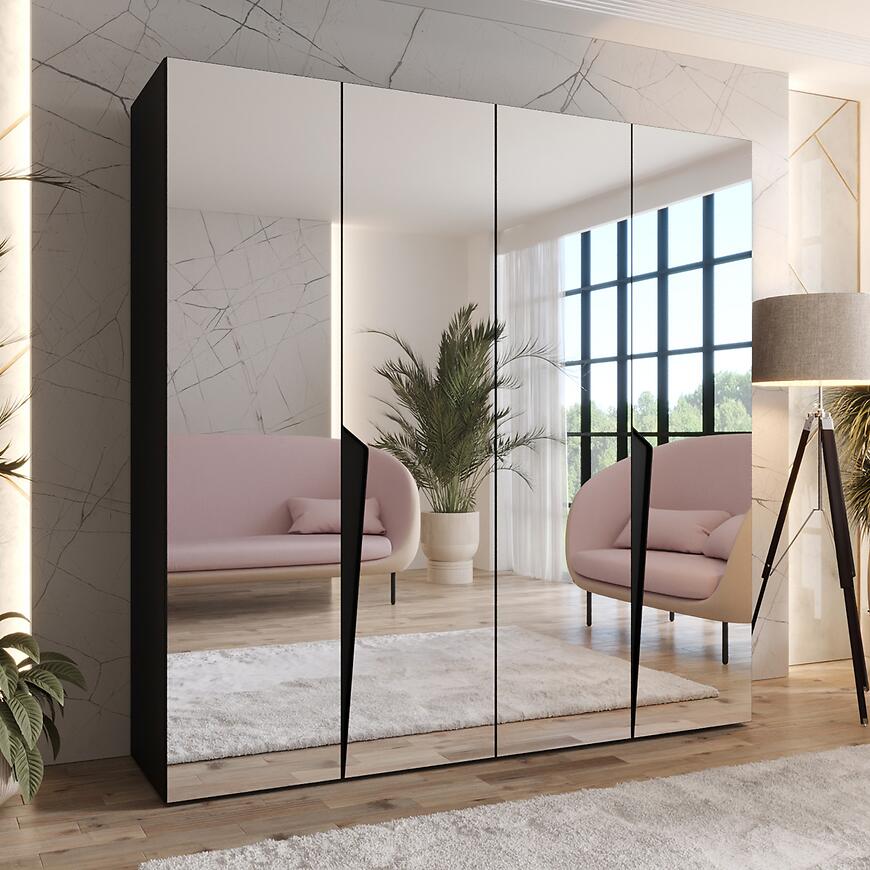 Model posiada klasyczne, kilkudrzwiowe drzwi oraz praktyczne lustro, które optycznie powiększa przestrzeń i ułatwia codzienne przygotowanie stylizacji. Prosty kształt szafy pozwala dopasować ją do nowoczesnych, minimalistycznych i eleganckich wnętrz.