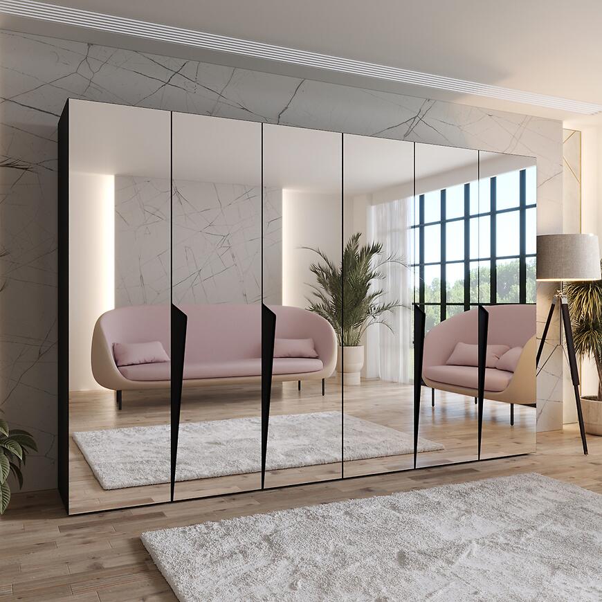 Szafa Piano 3-300 w kolorze czarnym to propozycja dla osób ceniących eleganckie, nowoczesne wnętrza. Duża szerokość 300 cm zapewnia wygodne przechowywanie ubrań, dodatków i tekstyliów. Minimalistyczna forma oraz głęboka czerń doskonale komponują się z aranżacjami loftowymi, glamour i modern.