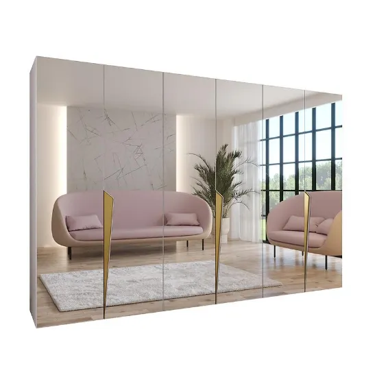 Model posiada klasyczne, kilkudrzwiowe drzwi oraz praktyczne lustro, które optycznie powiększa przestrzeń i ułatwia codzienne przygotowanie stylizacji. Prosta forma szafy pozwala dopasować ją do nowoczesnych, minimalistycznych oraz eleganckich aranżacji wnętrz.