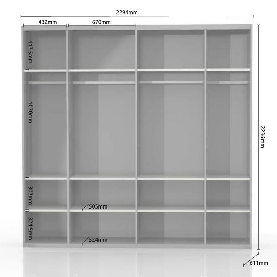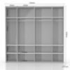 W jej wnętrzu znajdziemy sporo miejsca do przechowywania- szerokość szafy wynosi 230 cm. Mebel tworzy wygodne miejsce do przetrzymywania odzieży lub dodatków. Wytrzymały materiał, z którego została wykonana szafa oraz ciekawy design sprawdzą się w niemal każdej aranżacji. Szafę wykonano z płyty wiórowej lakierowanej.