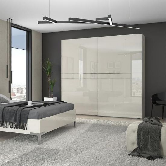 Dwudrzwiowa szafa Piano to doskonała propozycja do sypialni czy też do przedpokoju w stylu nowoczesnym. Fronty wykonany w kolorze beżowym. Całość wykonana w połysku. Szafa posiada wygodne w użytkowaniu i nie zabierające miejsca- drzwi przesuwne.