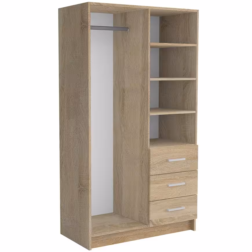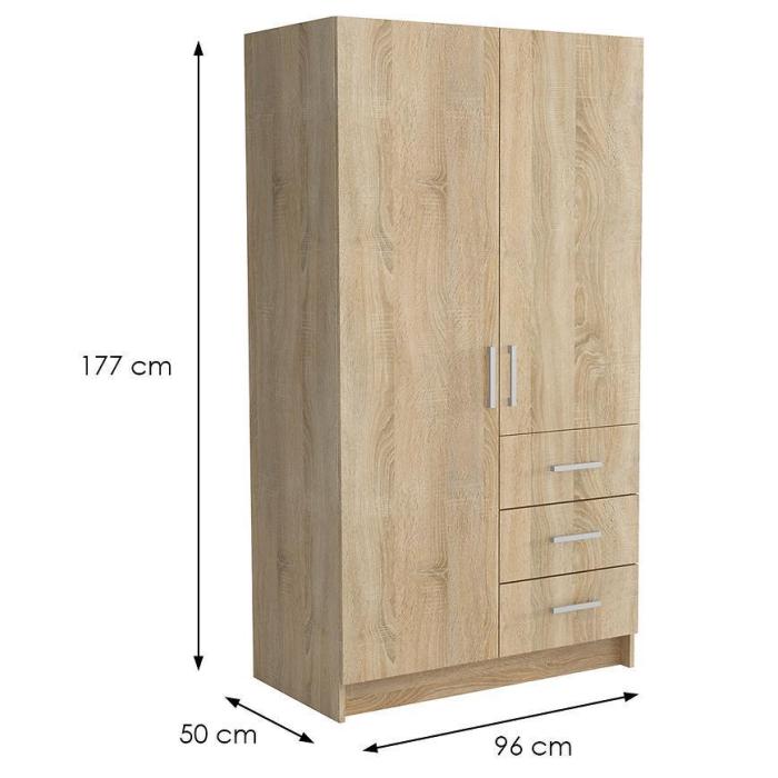 Szafa uchylna Pino to propozycja do pokoju dziennego, ale znajdzie swoje miejsce również w innym pomieszczeniu, jak na przykład - przedpokój czy garderobie. Materiał wykonania to płyta wiórowa laminowana. Szafa posiada trzy szuflady, półki oraz drążek na ubrania. Nowoczesny styl mebli wpadnie do gustu każdemu, kto poszukuje eleganckiego, klasycznego, a zarazem nowoczesnego umeblowania. Idealnie wpasuje się w większość aranżacji. Przeznaczona do samodzielnego montażu.