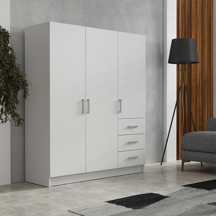 Szafa uchylna Pino to propozycja do pokoju dziennego, ale znajdzie swoje miejsce również w innym pomieszczeniu, jak na przykład - przedpokój czy garderobie. Materiał wykonania to płyta wiórowa laminowana. Szafa posiada trzy szuflady, półki oraz drążek na ubrania. Nowoczesny styl mebli wpadnie do gustu każdemu, kto poszukuje eleganckiego, klasycznego, a zarazem nowoczesnego umeblowania. Idealnie wpasuje się w większość aranżacji. Przeznaczona do samodzielnego montażu.