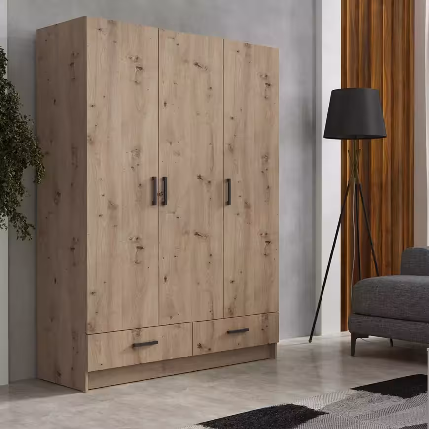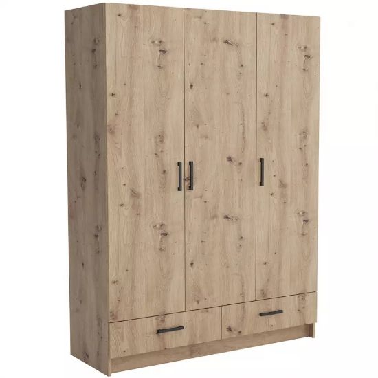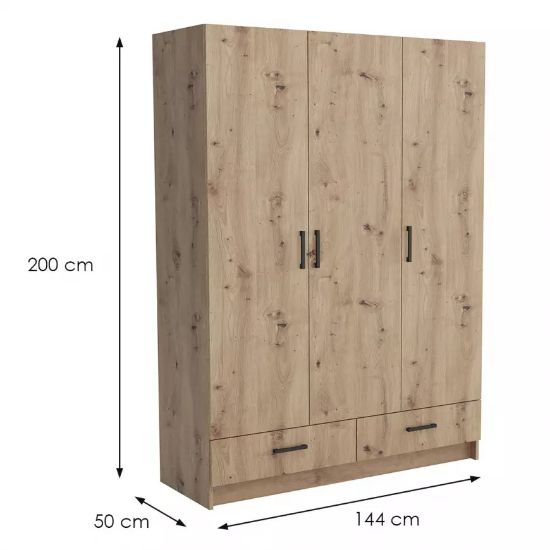 Szafa uchylna Pino to propozycja do pokoju dziennego, ale znajdzie swoje miejsce również w innym pomieszczeniu, jak na przykład - przedpokój czy garderobie. Materiał wykonania to płyta wiórowa laminowana. Szafa posiada dwie szuflady, półki oraz drążek na ubrania. Nowoczesny styl mebli wpadnie do gustu każdemu, kto poszukuje eleganckiego, klasycznego, a zarazem nowoczesnego umeblowania. Idealnie wpasuje się w większość aranżacji. Przeznaczona do samodzielnego montażu.