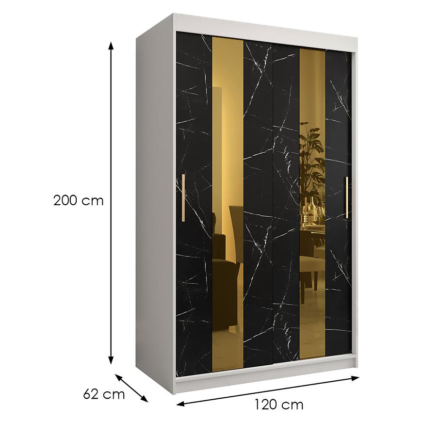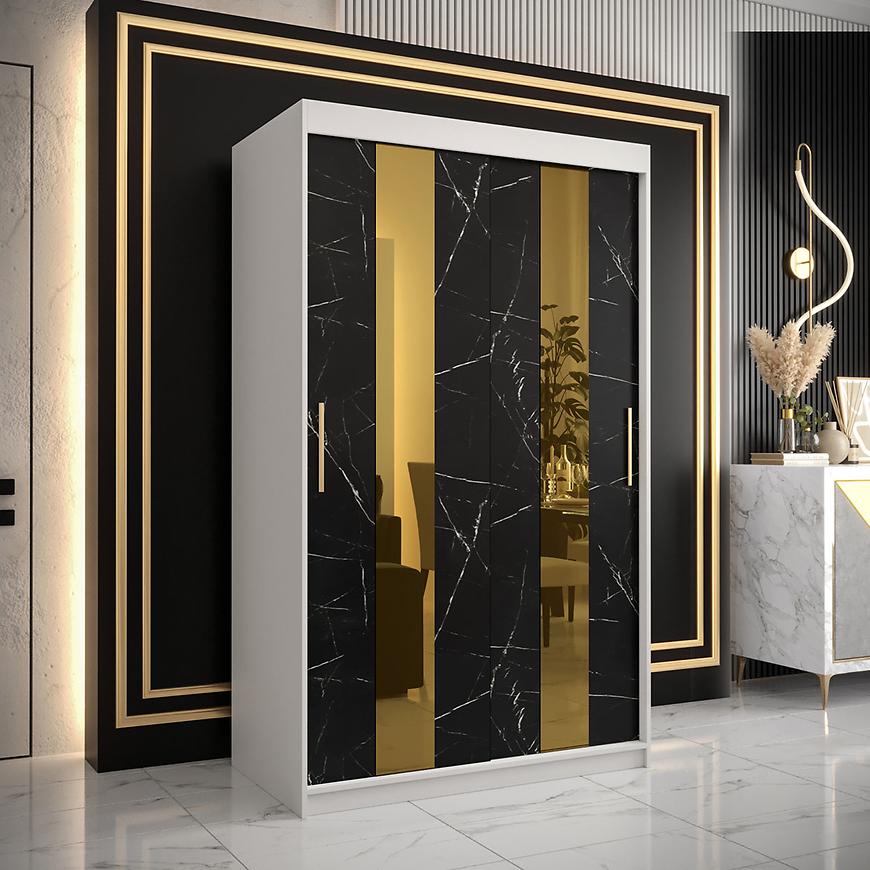 Szafa Platinum Pole z lustrem w złotym kolorze to nie tylko praktyczne miejsce do przechowywania ubrań, ale również funkcjonalny element, który optycznie powiększa przestrzeń. Lustro dodaje również elegancji i sprawia, że codzienna pielęgnacja wygląda jeszcze lepiej.