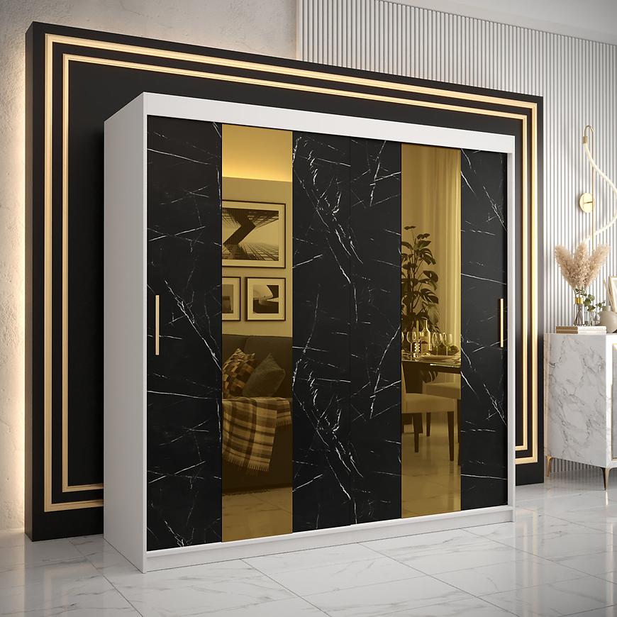 Szafa Platinum Pole z lustrem w złotym kolorze to nie tylko praktyczne miejsce do przechowywania ubrań, ale również funkcjonalny element, który optycznie powiększa przestrzeń. Lustro dodaje również elegancji i sprawia, że codzienna pielęgnacja wygląda jeszcze lepiej.