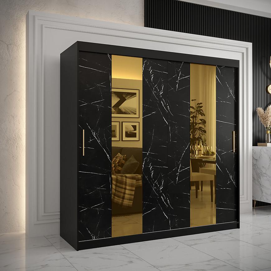 Szafa Platinum Pole z lustrem w złotym kolorze to nie tylko praktyczne miejsce do przechowywania ubrań, ale również funkcjonalny element, który optycznie powiększa przestrzeń. Lustro dodaje również elegancji i sprawia, że codzienna pielęgnacja wygląda jeszcze lepiej.