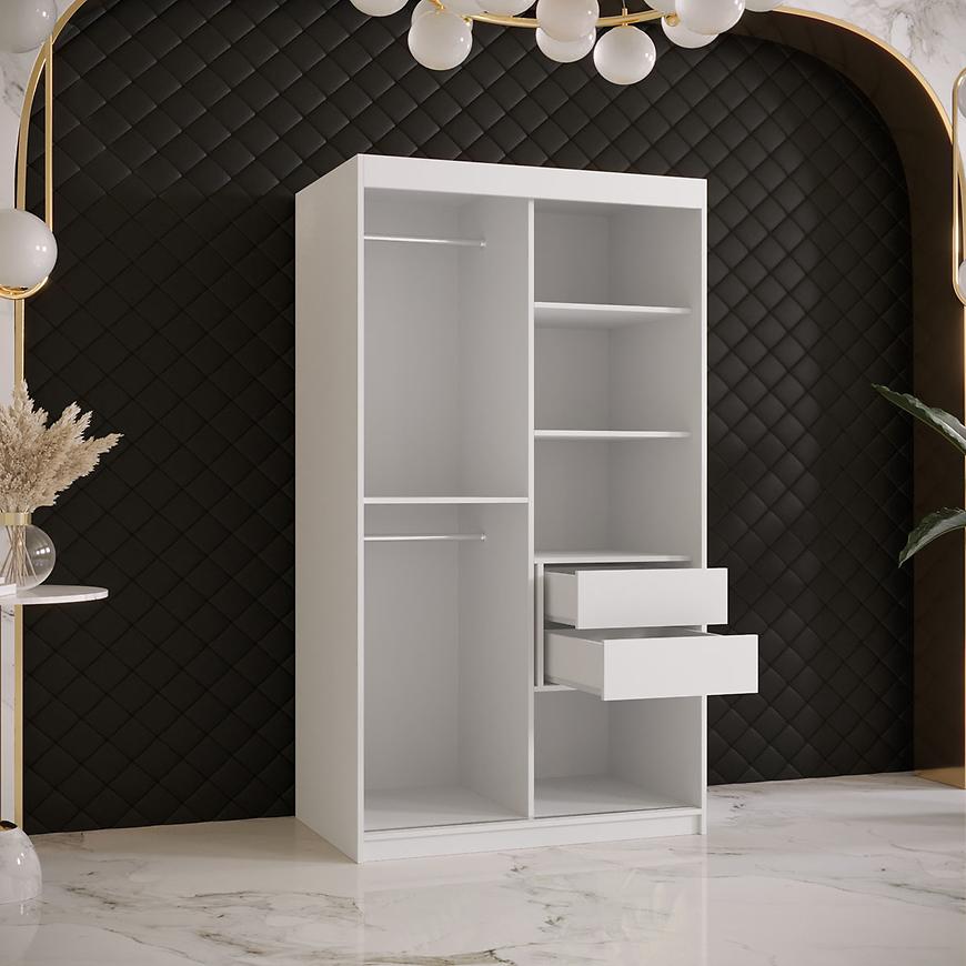 Biały kolor korpusu szafy Platinum T1 stanowi neutralne tło dla efektownych frontów. Matowe wykończenie korpusu dodaje szafie elegancji, jednocześnie harmonijnie współgrając z nowoczesnym stylem wnętrza.