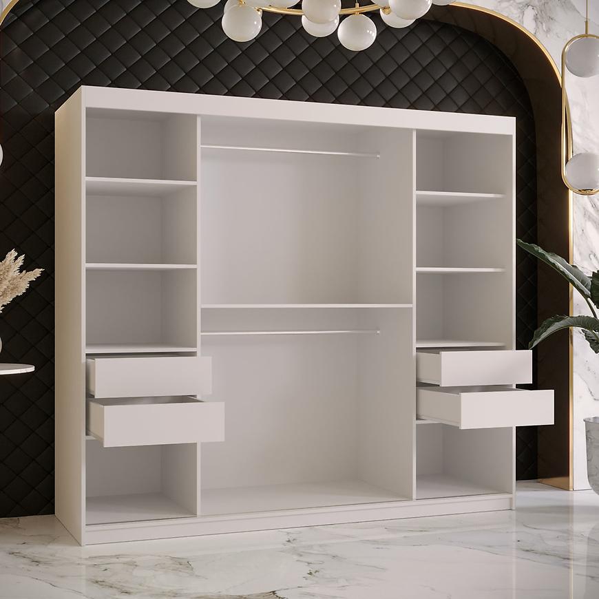Szafa Platinum T1 to eleganckie i funkcjonalne rozwiązanie do przechowywania, idealne do nowoczesnych wnętrz. Jej drzwi przesuwne to nie tylko praktyczne, ale także stylowe rozwiązanie, które oszczędza miejsce i nadaje pomieszczeniu nowoczesny charakter.