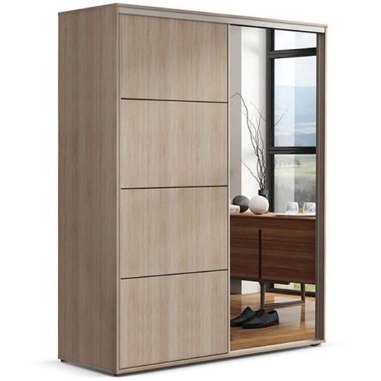 Szafa w kolorze dąb sonoma z kolekcji Pola to doskonała propozycja do pokoju dziennego, pokoju dziecka, ale znajdzie swoje miejsce również w innym pomieszczeniu, jak na przykład - przedpokój czy garderobie, sypialni. Materiał wykonania to płyta laminowana. Szafa posiada półki i drążek na ubrania. Duża szafa posiada również lustro, które sprawi, że pomieszczenie stanie się optycznie większe. Wygląd szafy sprawi, że wpasuje się w większość aranżacji. Szafa będzie świetnym miejscem do wieszania ubrań, na buty lub inne domowe tekstylia. Nowoczesny styl mebli wpadnie do gustu każdemu, kto poszukuje eleganckiego, klasycznego, a zarazem nowoczesnego umeblowania. Szafa przeznaczona do samodzielnego montażu.