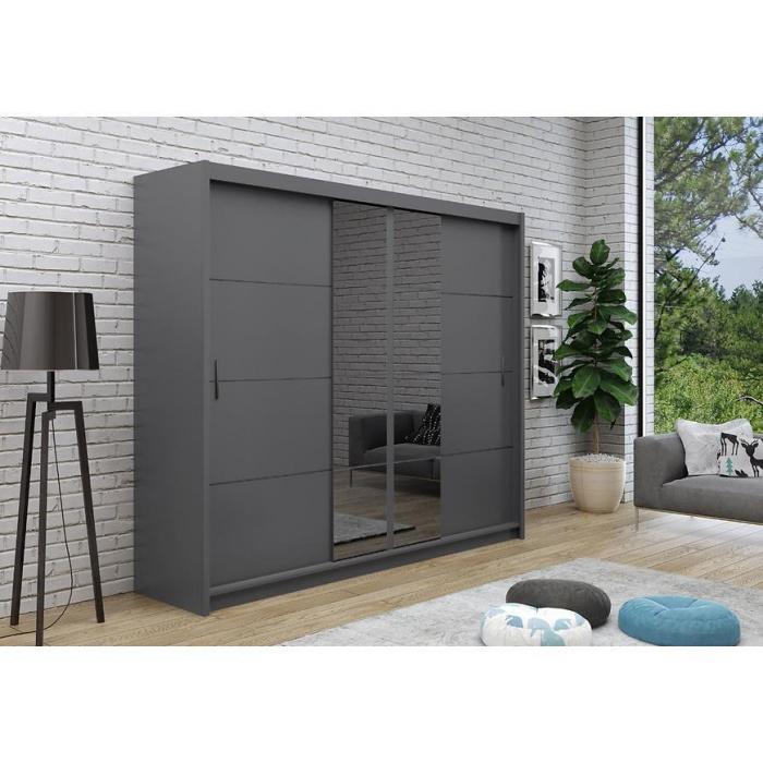 Szafa w kolorze grafit z kolekcji Porto to doskonała propozycja do pokoju dziennego, ale znajdzie swoje miejsce również w innym pomieszczeniu, jak na przykład - przedpokój czy garderobie, sypialni. Materiał wykonania to płyta laminowana. Szafa posiada półki, drążek na ubrania. Czarne wstawki i minimalistyczne elementy w postaci rączek dodają charakteru. Szafa dostępna w wersji z lustrem, dlatego właściciele mniejszych mieszkań z pewnością docenią takie rozwiązanie, nie musząc gospodarować dodatkowej przestrzeni na lustro. Wygląd szafy sprawi, że wpasuje się w większość aranżacji. Szafa będzie świetnym miejscem do wieszania ubrań, na buty lub inne domowe tekstylia. Nowoczesny styl mebli wpadnie do gustu każdemu, kto poszukuje eleganckiego, klasycznego, a zarazem nowoczesnego umeblowania. Szafa przeznaczona do samodzielnego montażu.