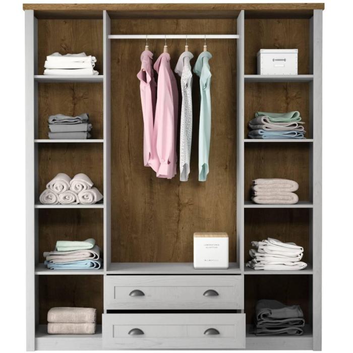 Szafa w kolorze sosna andersen/dąb lefkas ciemny z kolekcji Prowansja to doskonała propozycja do pokoju dziennego, ale znajdzie swoje miejsce również w innym pomieszczeniu, jak na przykład - przedpokój czy garderobie, sypialni. Materiał wykonania to płyta meblowa. Szafa posiada półki na ubrania oraz szuflady. Wygląd szafy sprawi, że wpasuje się w większość aranżacji. Szafa będzie świetnym miejscem do wieszania ubrań, na buty lub inne domowe tekstylia. Nowoczesny styl mebli wpadnie do gustu każdemu, kto poszukuje eleganckiego, klasycznego, a zarazem nowoczesnego umeblowania. Szafa przeznaczona do samodzielnego montażu.