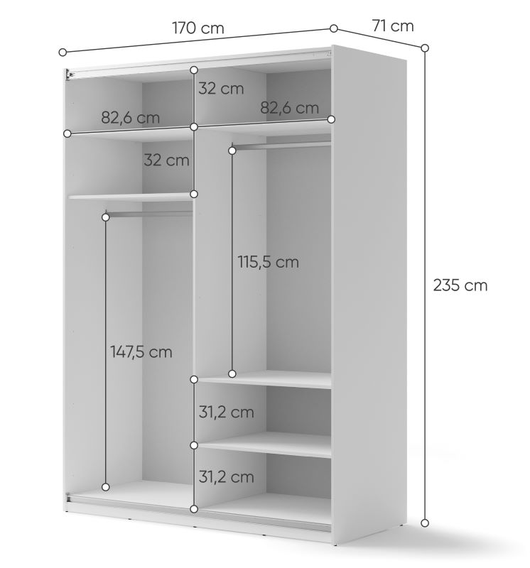 Szafa przesuwna Maxi MX-03 z lustrem 170 cm biały