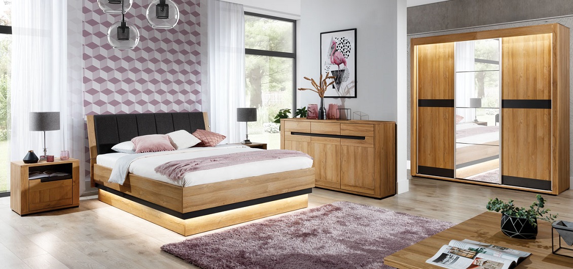 Do sypialni idealnie sprawdzą się nowoczesne szafy z lustrami, które optycznie powiększają przestrzeń, a także praktyczne szafki nocne, doskonałe do przechowywania najpotrzebniejszych drobiazgów. Kolekcja YORK łączy estetykę i komfort użytkowania, tworząc spójną i stylową aranżację wnętrza.